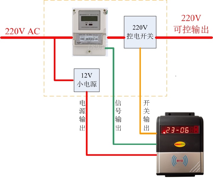 工作模式: 根据使用电量收费,用户持电卡在控电器上刷卡单次可充值固定金额到控电器,刷卡后正常用电。若机器内余额不足,则自动断电;余额不足提醒功能。
